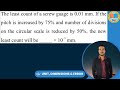 - Original least count = \( 0.01 \, \text{mm} \) - The pitch is increased by 75% (new pitch = \( 1.75 \times \text{original pitch} \)) - The number of divisions on the circular scale is reduced by 50% (new divisions = \( \frac{1}{2} \) of the original divisions)