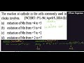 In the cathode reaction manganese (Mn) is reduced from the \(+4\) oxidation state to the \(+3\) state.