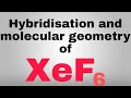 Ans: The structure of XeF6 is octahedral. In this Xe is located in the centre along with six fluorine atoms that are in symmetrical arrangement around Xe. The hybridization of XeF6 is sp3d3.